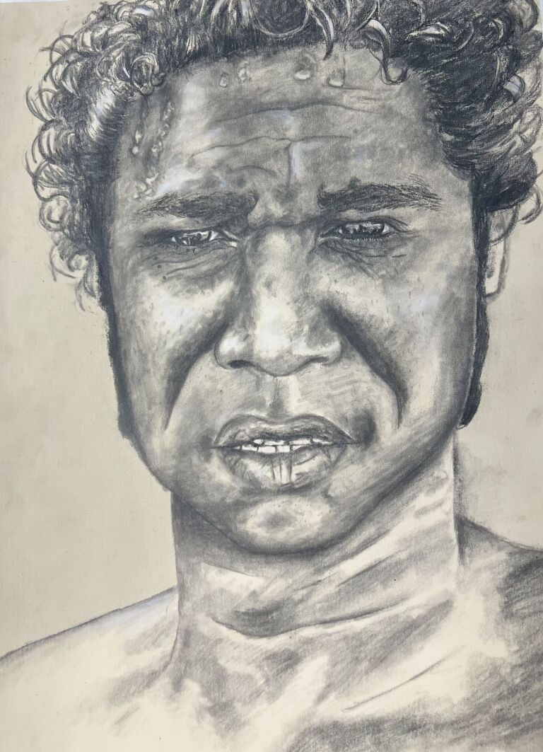 Ruby Bieundurry, Tjapanangka, conte on paper, 60 x 45 cm. Year 9, Parkerville Steiner College, WA.